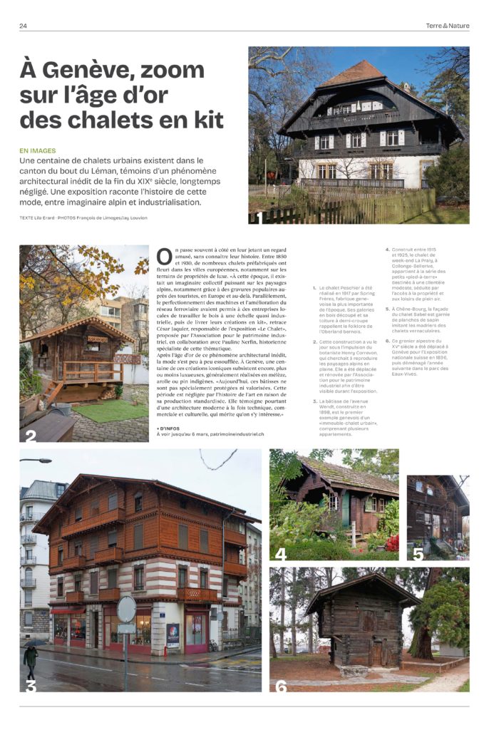 Article de Lila Erard dans Terre & Nature, « A Genève, zoom sur l’âge d’or des chalets en kit », 3 mars 2026